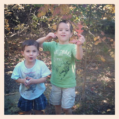 I blew up instagram on Sunday with photos from our land in the country AKA "The Land". We haven't been out to the land in a long time, but it's recently been mowed and now we can walk around. There are beautiful fall leaves still clinging to the trees, hidden paths, and exposed rock to run and play on. We plan to have a camp out there very soon. We also plan to have our family photos taken there this weekend.